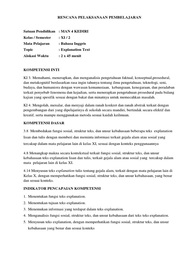 DOC) Rencana Pelaksanaan Pembelajaran Explanation.docx | satriani anwar - Academia.edu