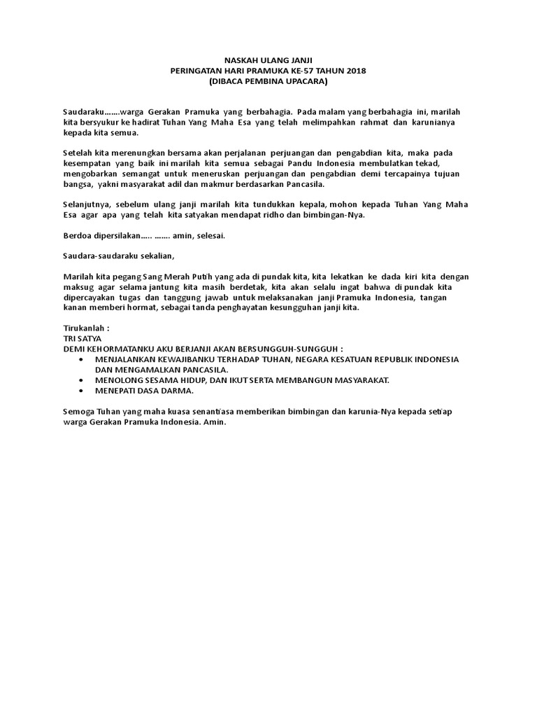 Contoh Teks/ Naskah Ulang Janji Hari Pramuka | totoktriyadi.com