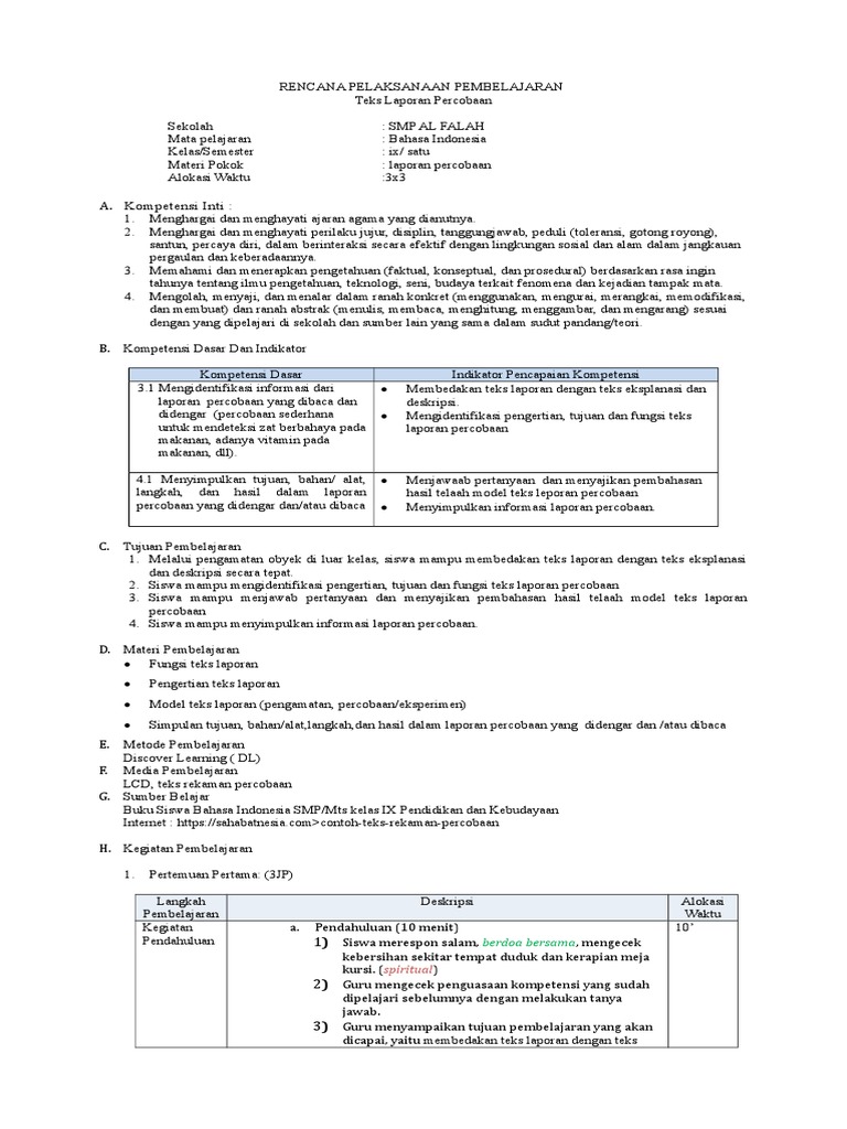Contoh Rpp K13 Bahasa Indonesia Teks Laporan Hasil Observasi (lho) Terbaru Disertai Literasi, Ppk, 4c Dan Hots 2019 [3no07xm52gnd]
