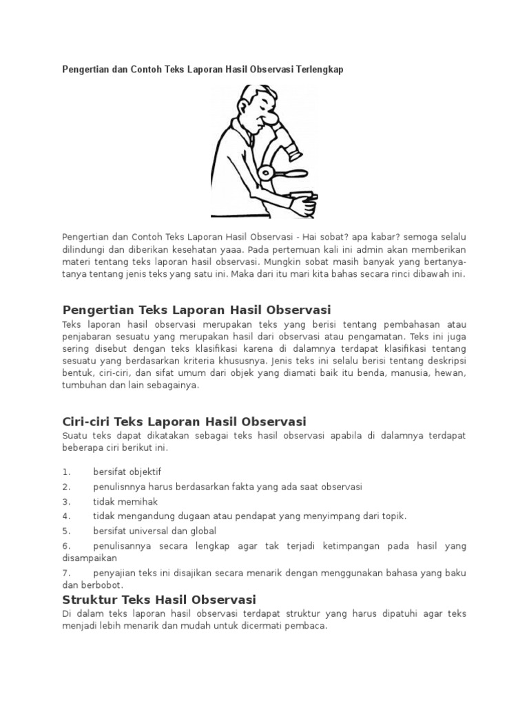 Pengertian Dan Contoh Teks Laporan Hasil Observasi Terlengkap