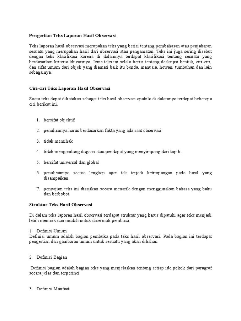 Pengertian Teks Laporan Hasil Observasi