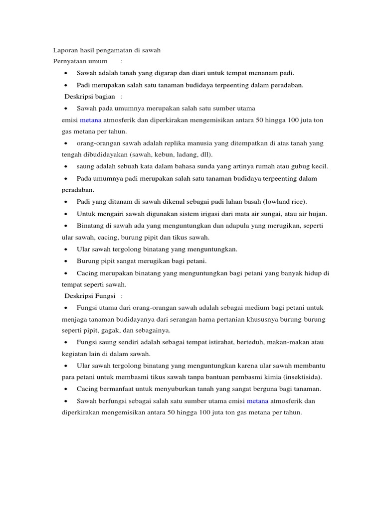 Contoh Teks Laporan Tentang Sawah Beserta Strukturnya