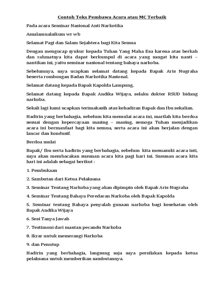 Contoh Naskah Mc Seminar - Contoh Naskah