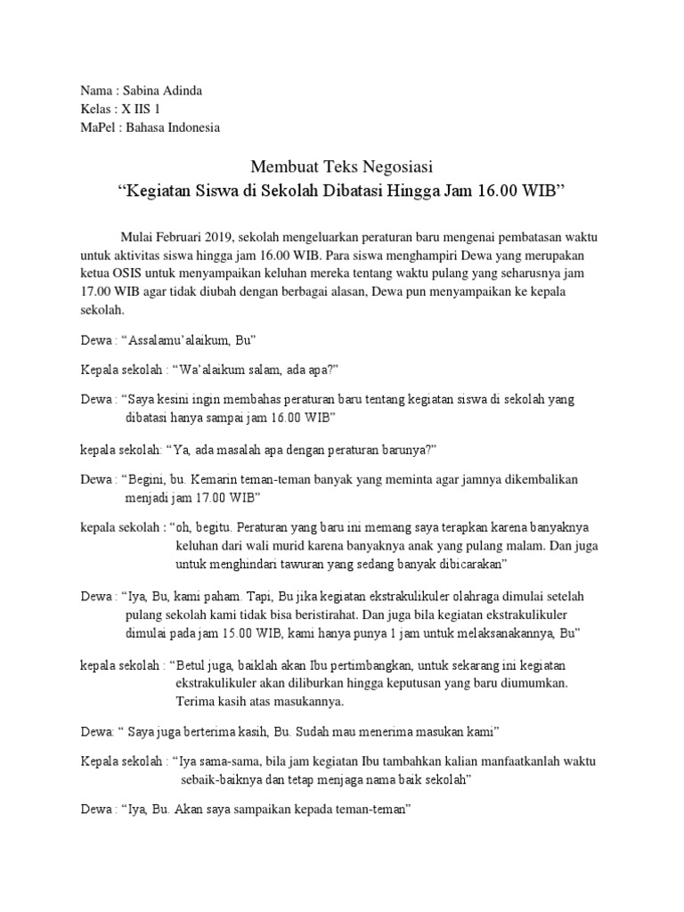 Contoh Teks Negosiasi Dalam Lingkungan Sekolah