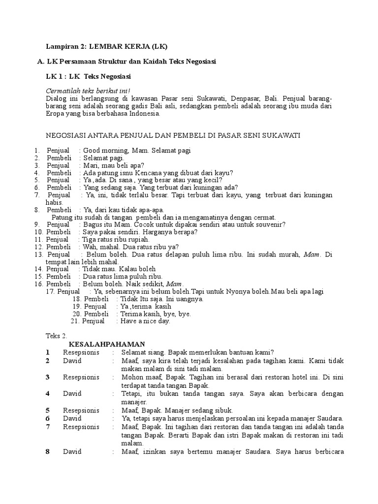 Teks Negosiasi Beserta Struktur Dan Ciri Bahasanya