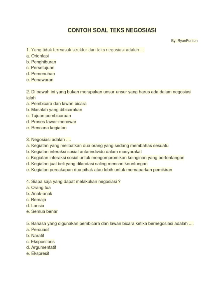 Contoh Soal Teks Negosiasi: By: Ryanpontoh