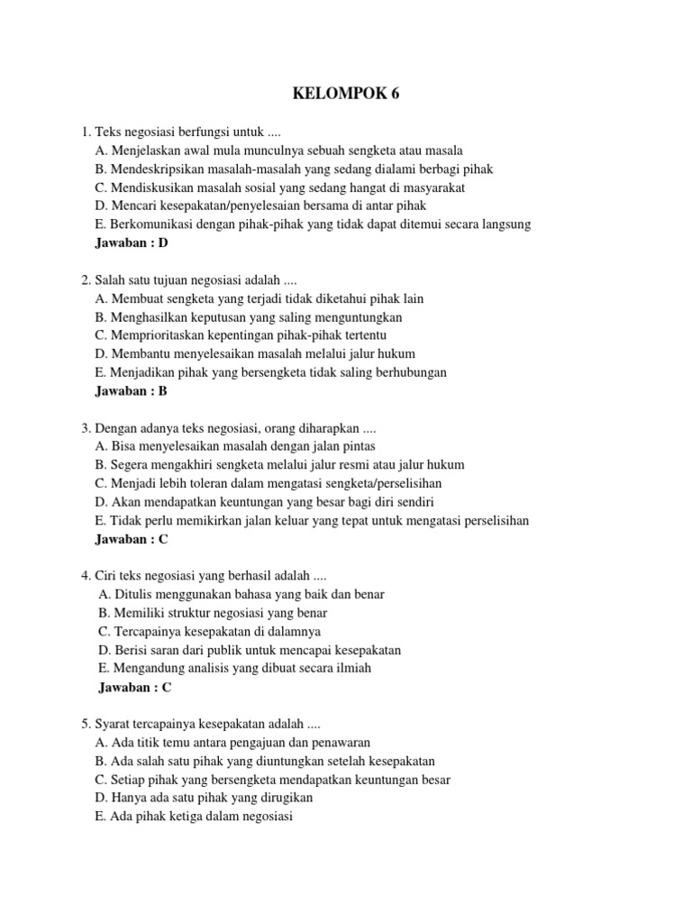 50 Contoh Soal PG Teks Negosiasi beserta Jawabannya