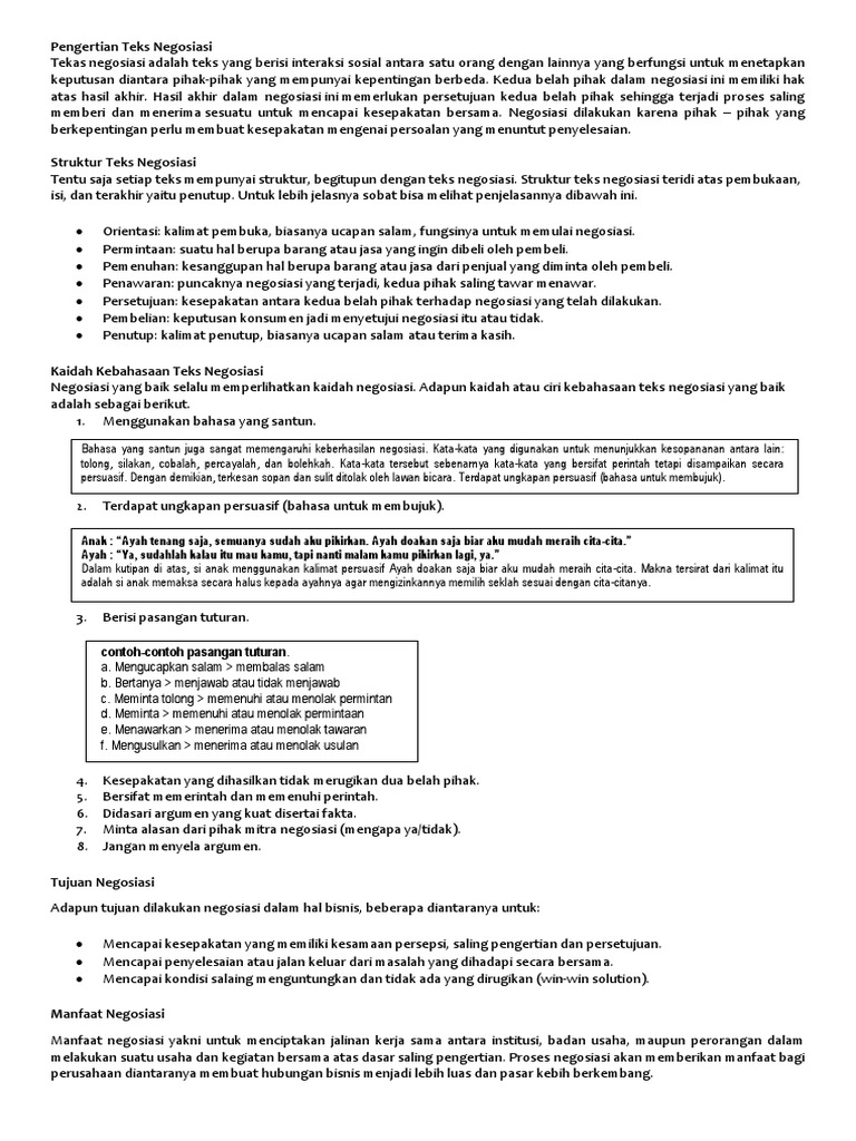 TEKS NEGOSIASI: Pengertian, Ciri, Kaidah, Struktur, Tujuan
