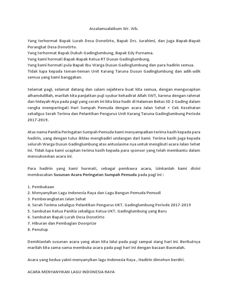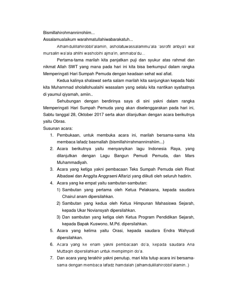 DOC) Susunan Upacara Hari Sumpah Pemuda | Hasna Shalihah - Academia.edu