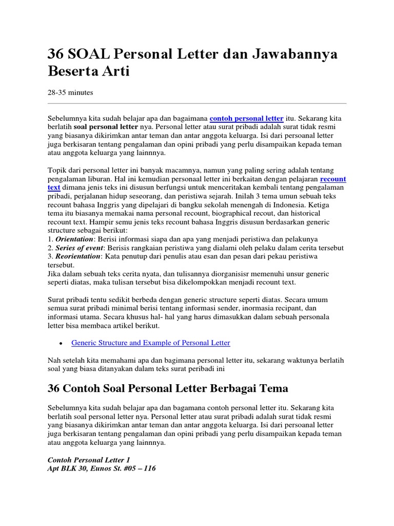 36 Contoh SOAL Personal Letter dan Jawabannya Beserta Arti | English Admin