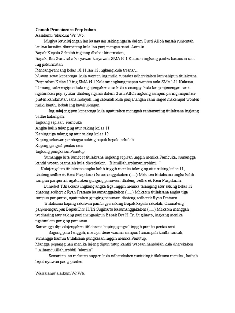 DOC) Teks pranata acara PERPISAHAN KELAS XII SMA N 2 PURBALINGGA Dening : Faradhea Safira / X MIA 4 | Faradhea Safira - Academia.edu
