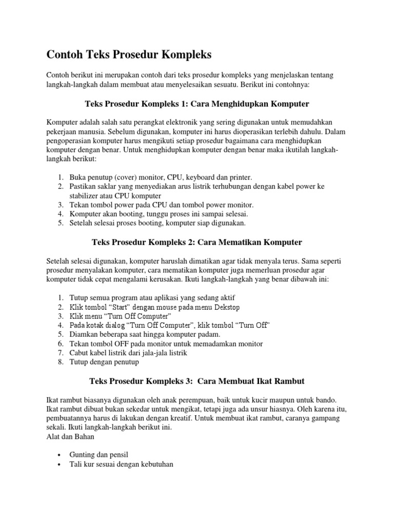 Contoh Teks Prosedur Mengoperasikan Komputer