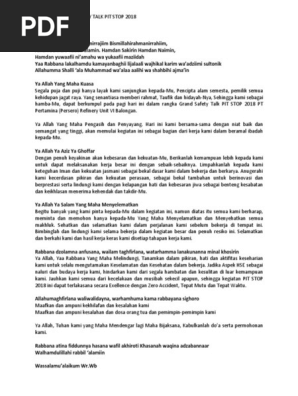 3. Teks Doa Grand Safety Talk Pit Stop 2018