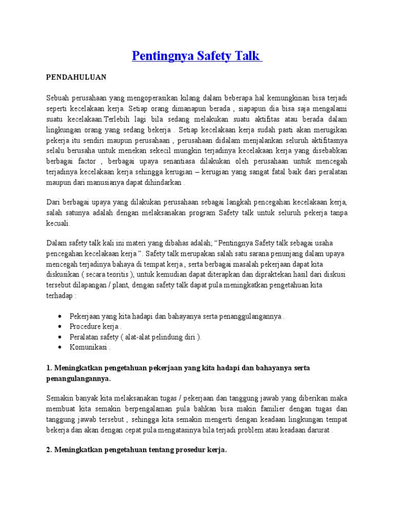 DOC) Contoh KUMPULAN SAFETY TALK | Marwan Hendrianes - Academia.edu