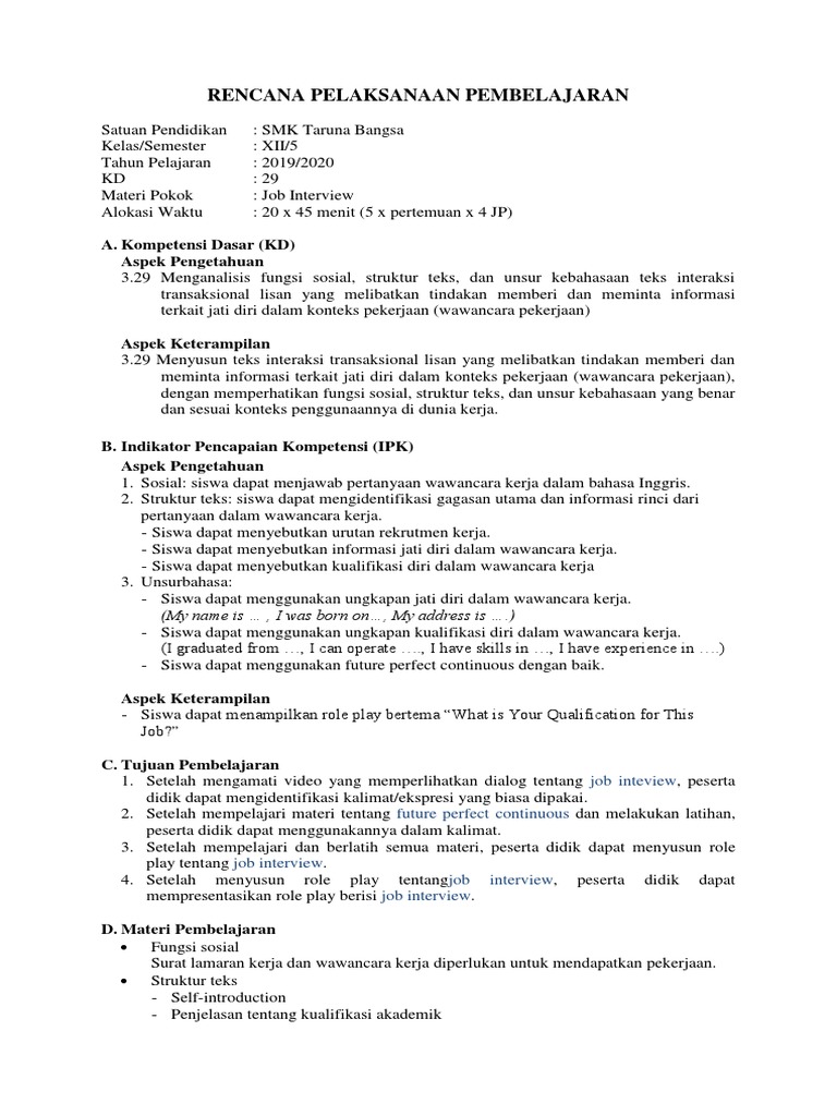 Contoh Rpp Job Interview - Guru Ilmu Sosial