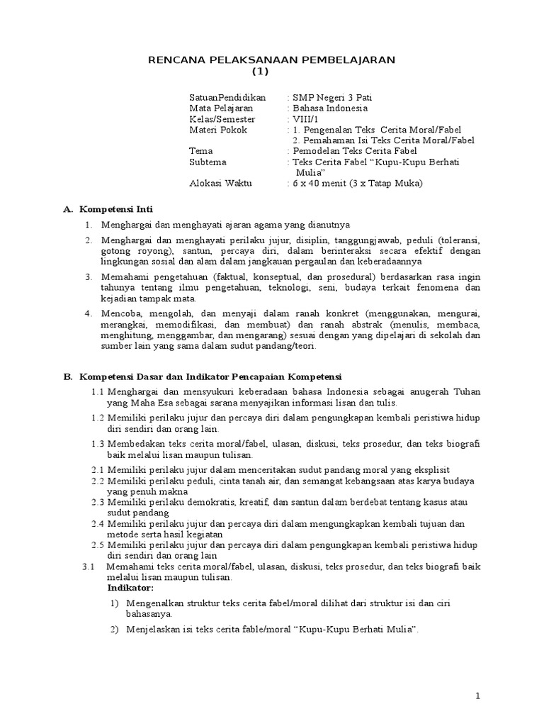 RPP Memahami Dan Menyusun Teks Fabel