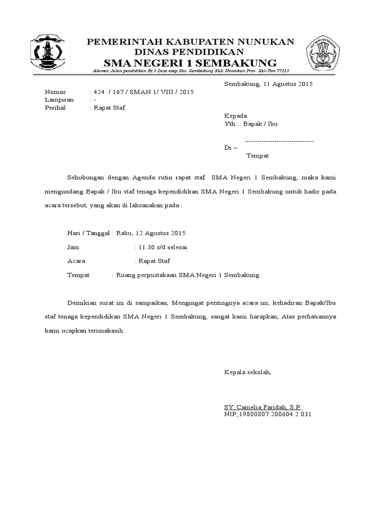 Contoh Surat Undangan Rapat Sekolah | Undangan, Sekolah, Surat