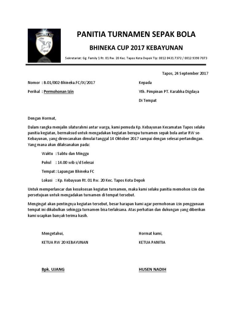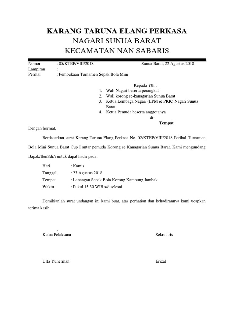 DOC) Contoh Surat Undangan Kompetisi Futsal 2 | rijalul muttaqin - Academia.edu