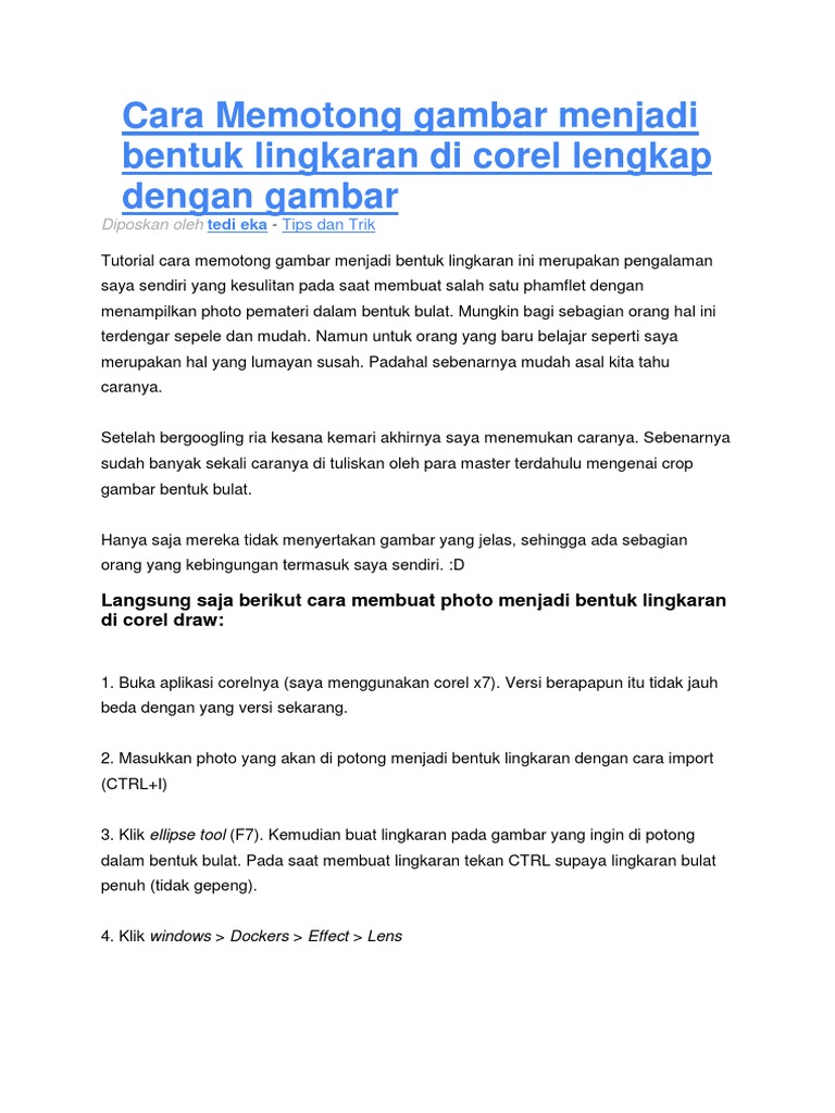 Cara Memotong gambar menjadi bentuk lingkaran di corel lengkap dengan gambar Tedi Eka