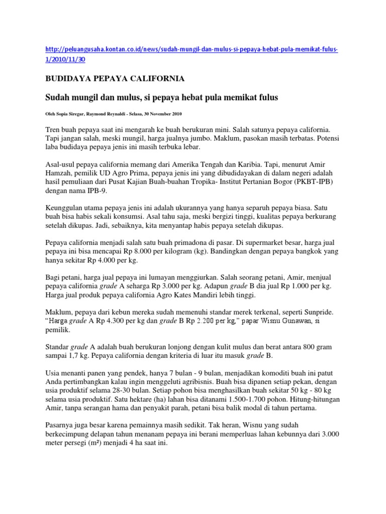 Bibit Pepaya Unggul California: Bibit Pepaya