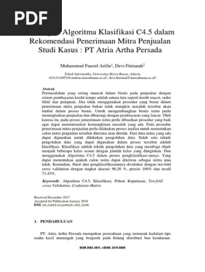 Penerapan Algoritma Klasifikasi C4.5 dalam Rekomendasi Penerimaan Mitra Penjualan Studi Kasus : PT Atria Artha Persada - PDF Free Download