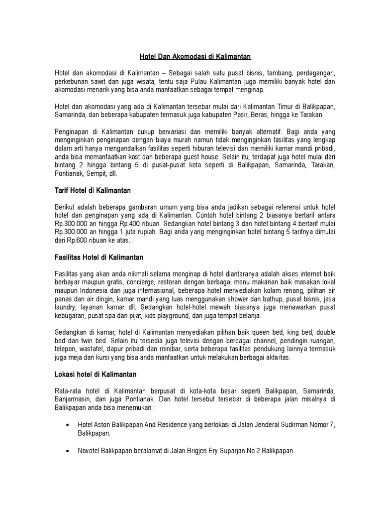 Hotel Dan Akomodasi Di Kalimantan