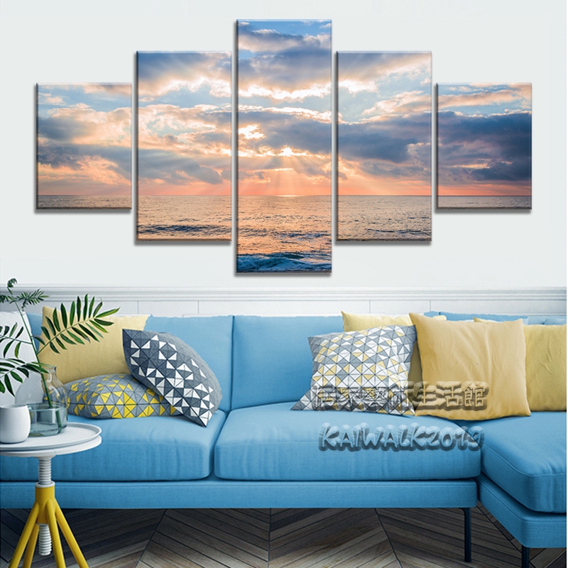 Lukisan Dengan Bingkai Bahan Kayu Desain Sea Sky Wave Sunshine Pemandangan Alam | Shopee Indonesia