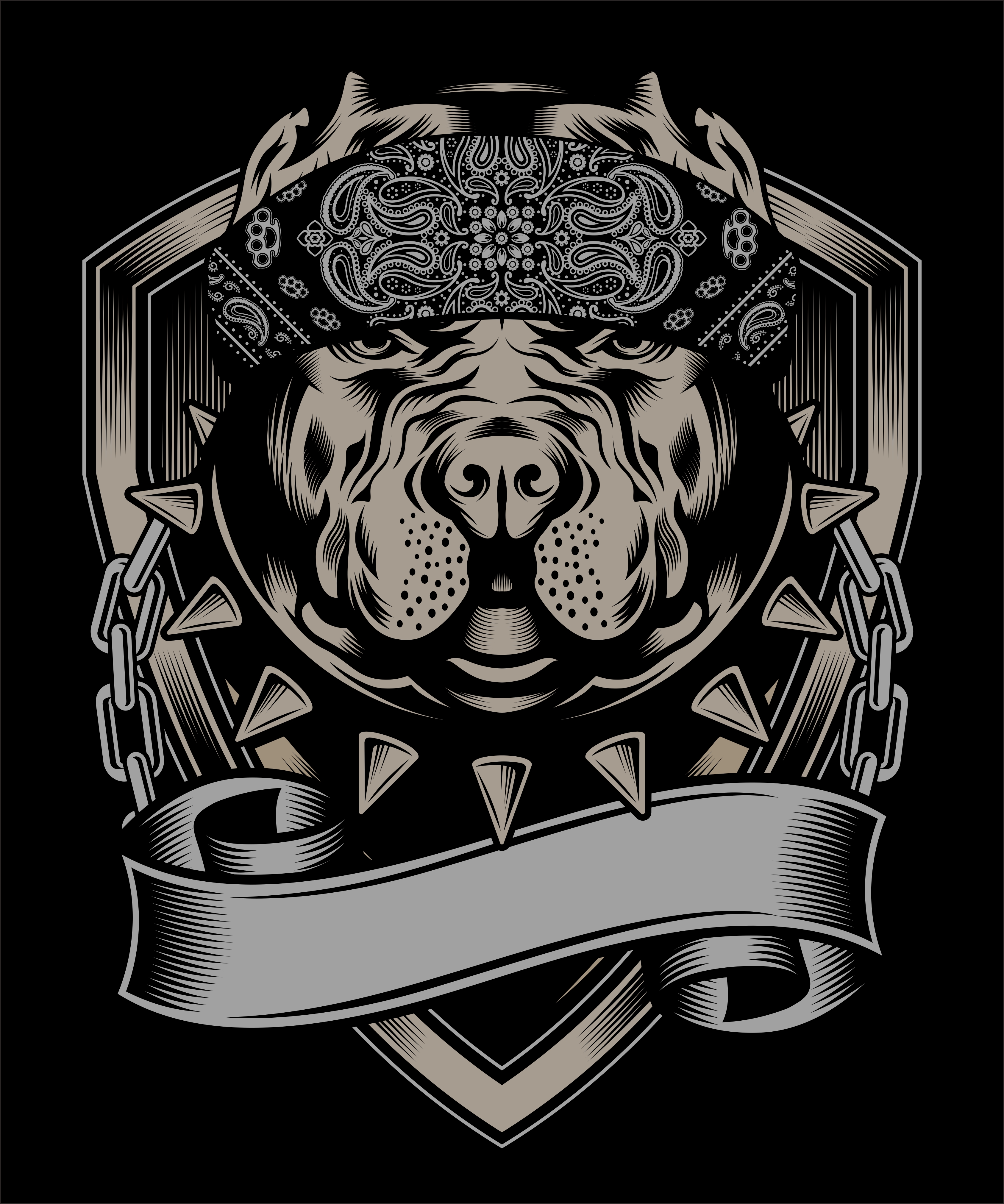 pit bull wearing bandana hand drawing vector - Download Free Vectors, Clipart Graphics & Vector Art