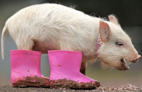 Gambar foto babi lucu menggemaskan sepatu boots | Download Foto Fb HD