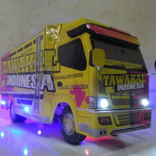 Miniatur truk canter tawakal Indonesia kuning Pink variasi lampu | Shopee Indonesia