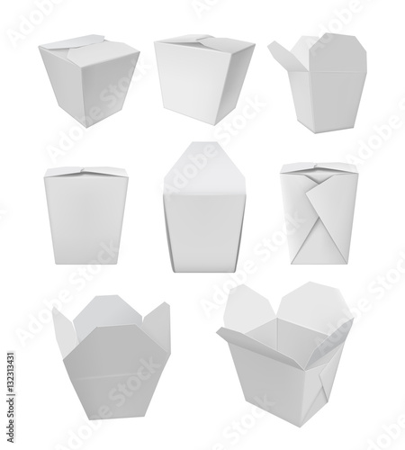 White Cardboard Fast Food Box, Packaging For Lunch, Chinese Food. On White Background Isolated. Mock Up, Mockup Template Ready For Your Design. Vector EPS10 Clip Art | k37044218 | Fotosearch