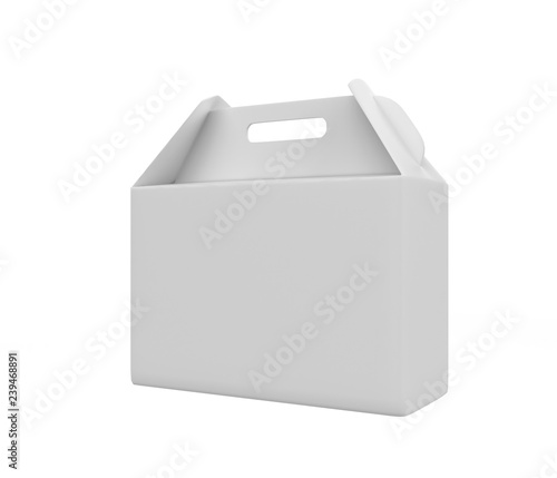 Realistic paper package, take away food box mock up, gift template container. blank white 3d model cardboard for your design.