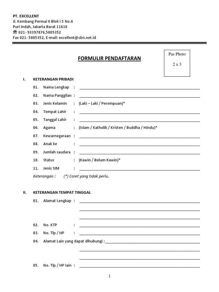 Formulir Cv Lamaran Kerja