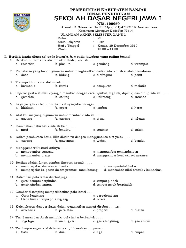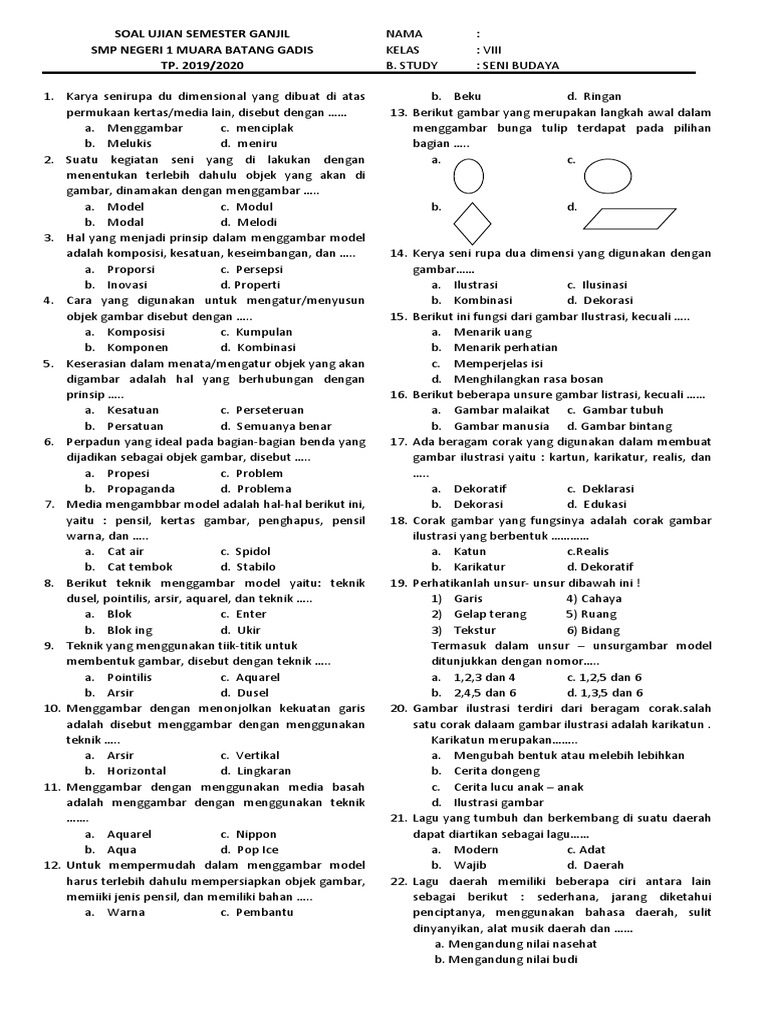 Contoh Soal Seni Budaya Kelas 10 (X) SMA/MA/SMK Semest