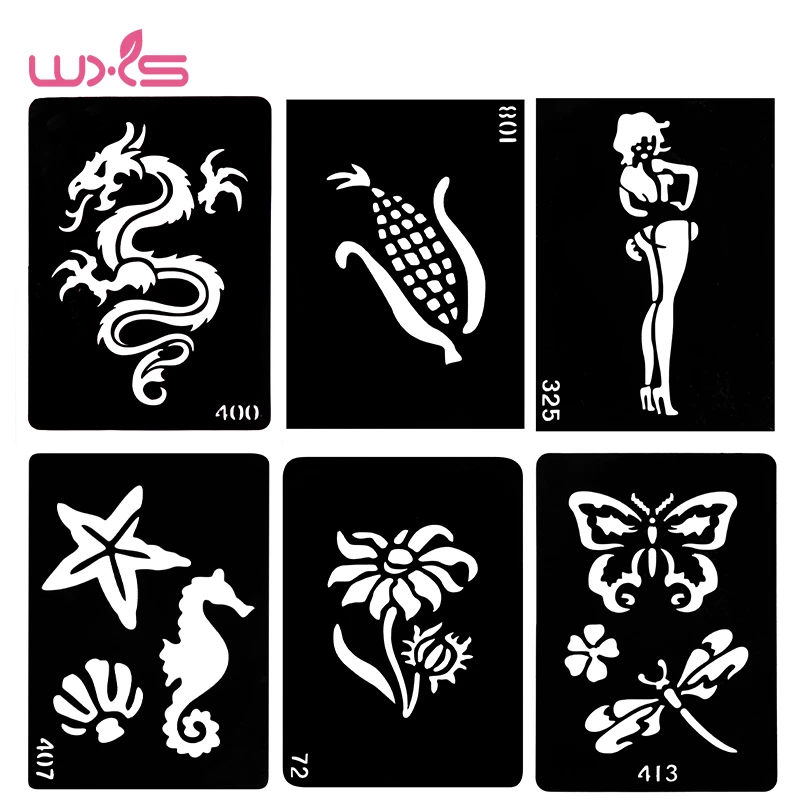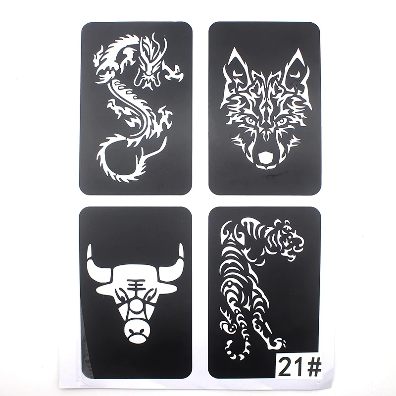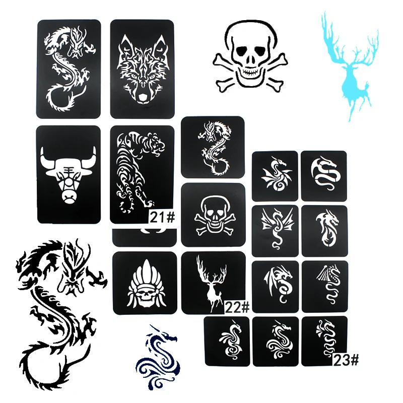 20 Pcs/lot Glitter Tato Stensil Keren Gambar Template untuk Pria Serigala Naga Tengkorak Hewan Airbrush Henna Tato Stensil TS 08|Tattoo Stensil| - AliExpress