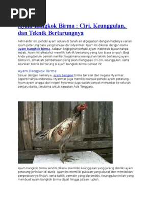 Mengetahui Teknik Tarung Ayam Birma Yang Sesungguhnya - PeduliAyam