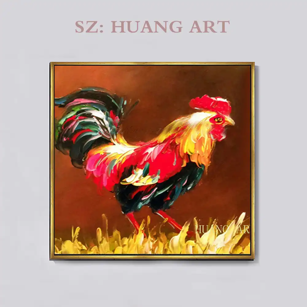 Warna warni Besar Ayam Gambar Tangan Menggambar Binatang Lucu Ayam Putih Kamar Kantor Hall Kamar Tidur Pisau Lukisan Penciptaan Tebal Minyak| | - AliExpress