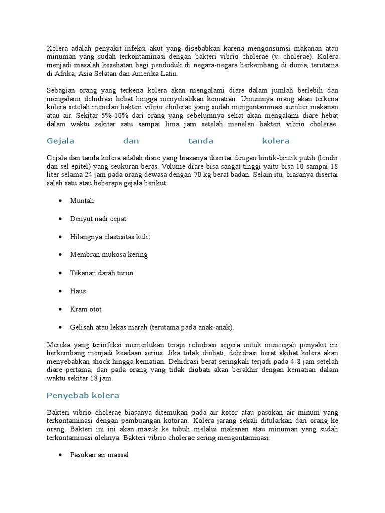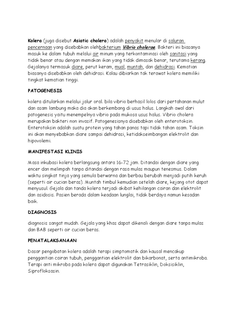 Penyakit Kolera Penyebab, Gejala, Patogenesis Dan Penatalaksanaannya - [DOC Document]