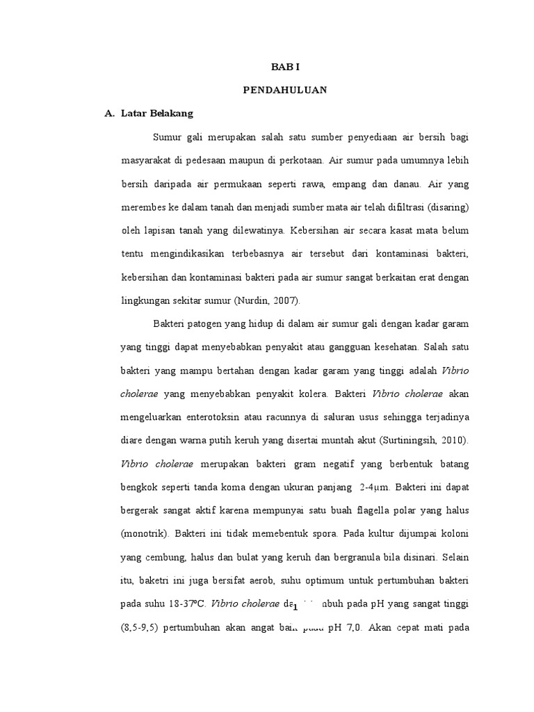 Bab I Pendahuluan A. Latar Belakang: cholerae yang menyebabkan penyakit kolera. Bakteri Vibrio cholerae akan