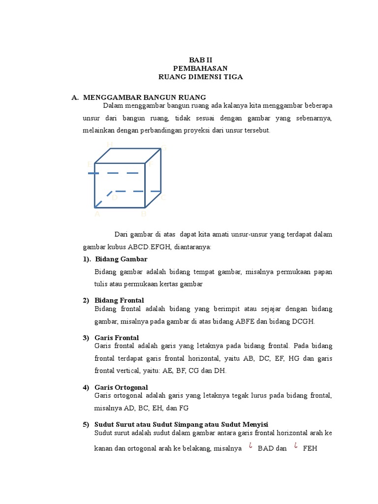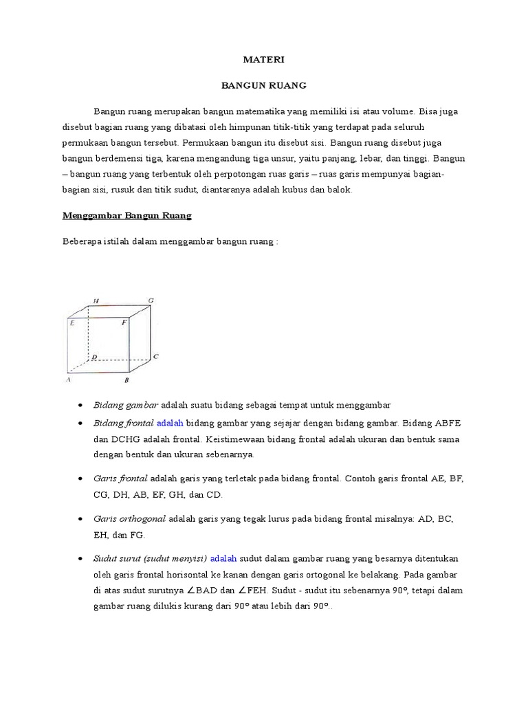 Web viewBidang Frontal= ABFE,DCGHBidang Ortogonal= BCGF,FGHE, ADHE, ABCDRusuk Frontal= AB,CD,EF,GH,AE,BF,CG,DHRusuk… - [DOCX Document]