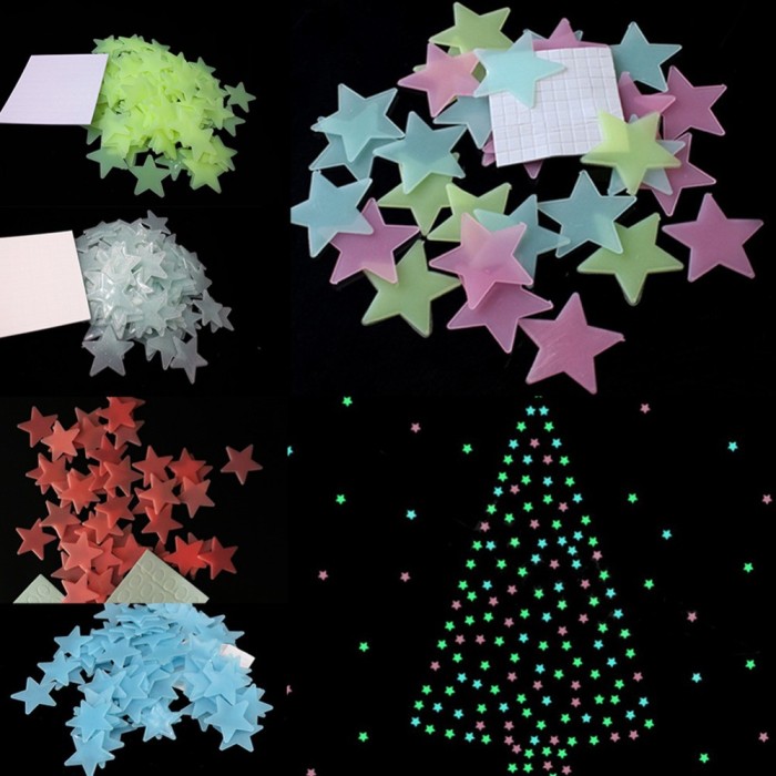 Dekorasi Rumah: 200Pcs DIY Stiker Dinding Gambar Bintang 3D Warna Menyala dalam Gelap untuk Kamar | Shopee Indonesia