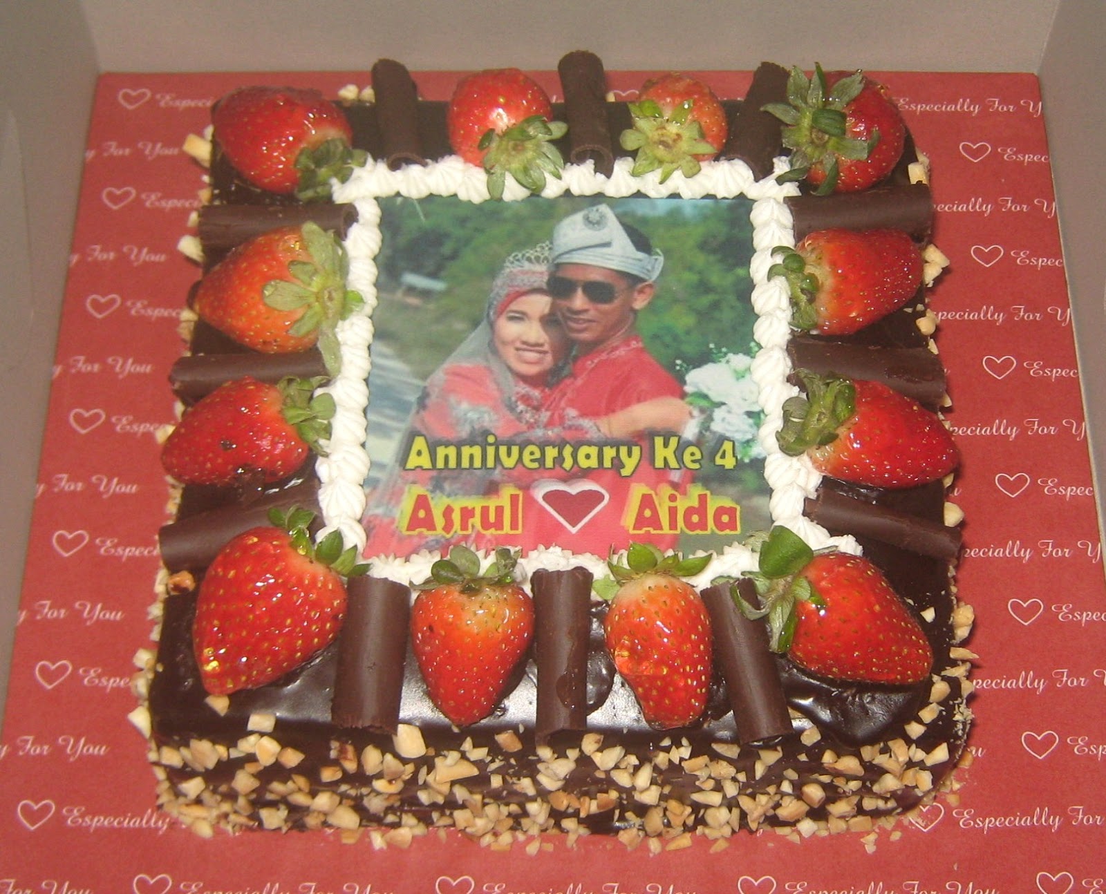 Noras Cake House Di Rawang. Tempahan Kek Coklat Moist Secara Online: KEK + GAMBAR PERIBADI + BUAH STRAWBERRY SEGAR + HIRISAN COKLAT DAN BADAM