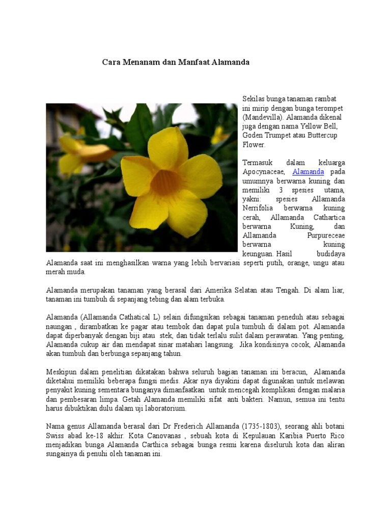 Cara Menanam Dan Manfaat Alamanda