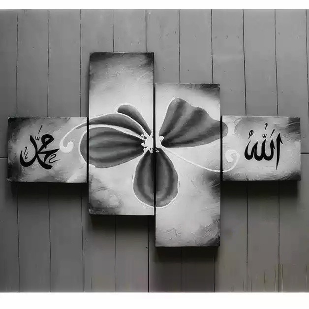 lukisan kaligrafi minimalis Allah Muhammad bunga sepatu hitam putih | Shopee Indonesia
