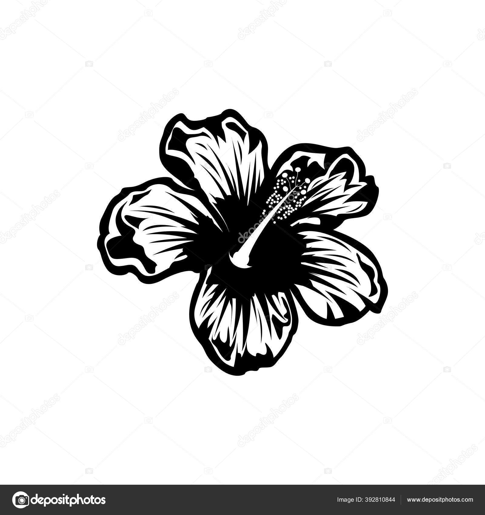 Vintage Black White Blooming Hibiscus Flowers Concept White Background Isolated — Stock Vector © lukiv007 #392810844