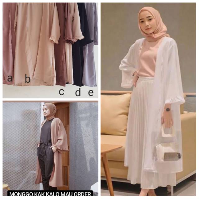 Luna long cardi/cardigan panjang muslim wanita/long cardigan/cardigan panjang ethnik wanita | Shopee Indonesia