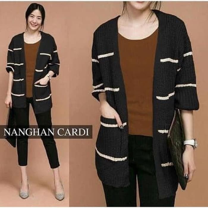 Cardigan Wanita Lengan Pendek Cardigan Kekinian NANGHAN CARDY Rajut Black BC Cardigan Wanita Rajut | Shopee Indonesia