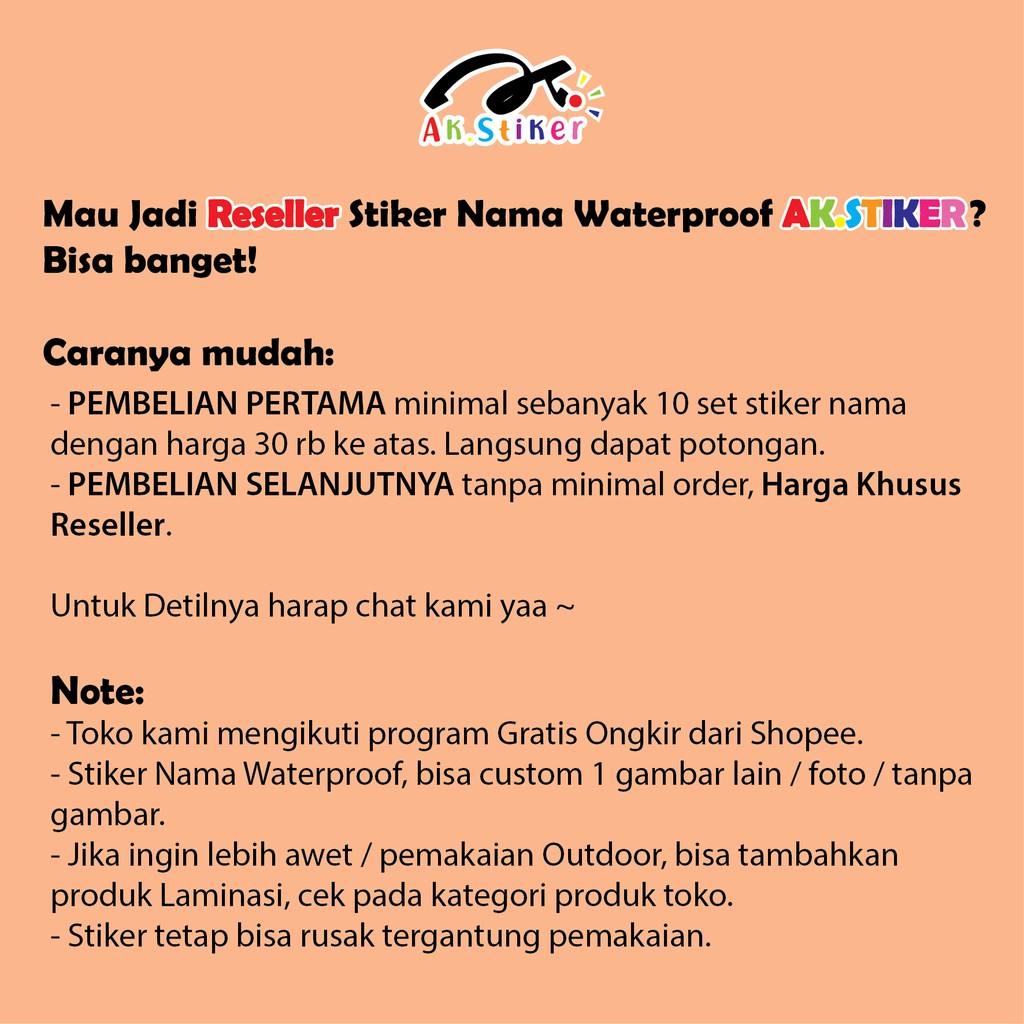 Stiker Nama AK Stiker Waterproof isi up to 50-60 pcs (Bisa Custom Gambar lain) | Shopee Indonesia
