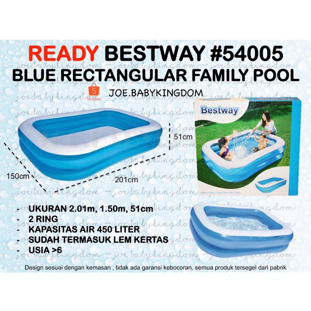 Kolam Renang Anak Besar Ukuran 2mtr BESTWAY 54005 / BLUE Rectangular Family Pool | Shopee Indonesia
