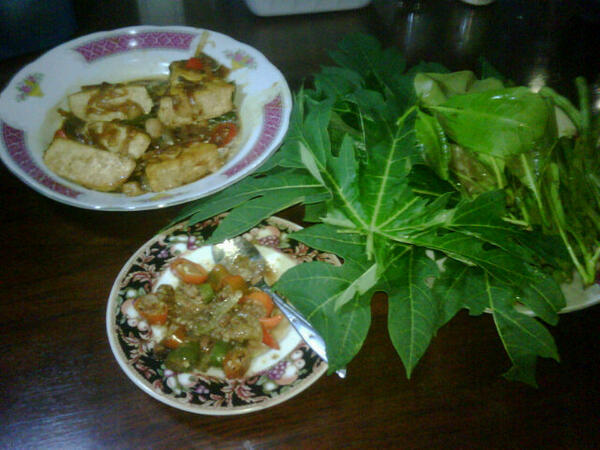 Leni Handayani no Twitter: “Dinner tumis tahu jamur lalap daun pepaya daun jambu mete sambal tauco..mantap gila #FoodCombining @erikarlebang http://t.co/T6qbLeNuJc”